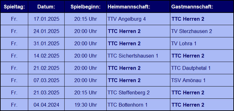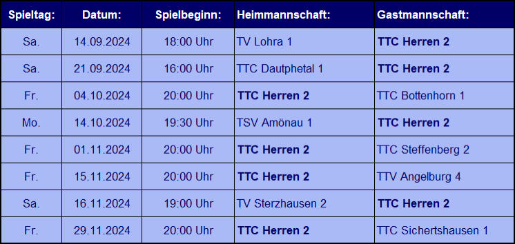 HIER geht´s zur aktuellen Tabelle der 2. Herrenmannschaft